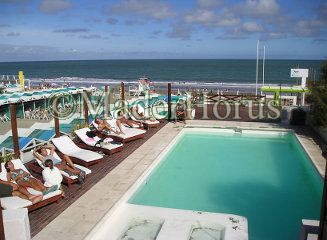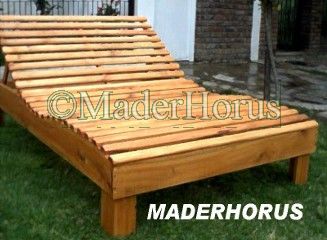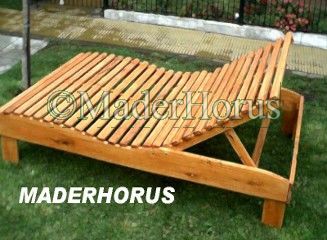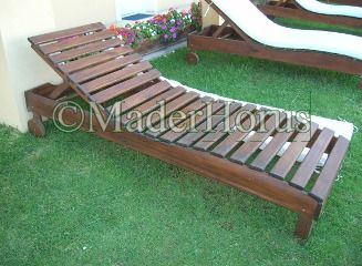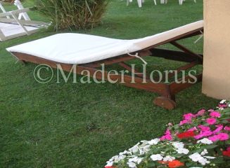 Camastro Reposera construida totalmente en madera de Eucaliptus, tratada con cetol, apta para uso en intemperie.